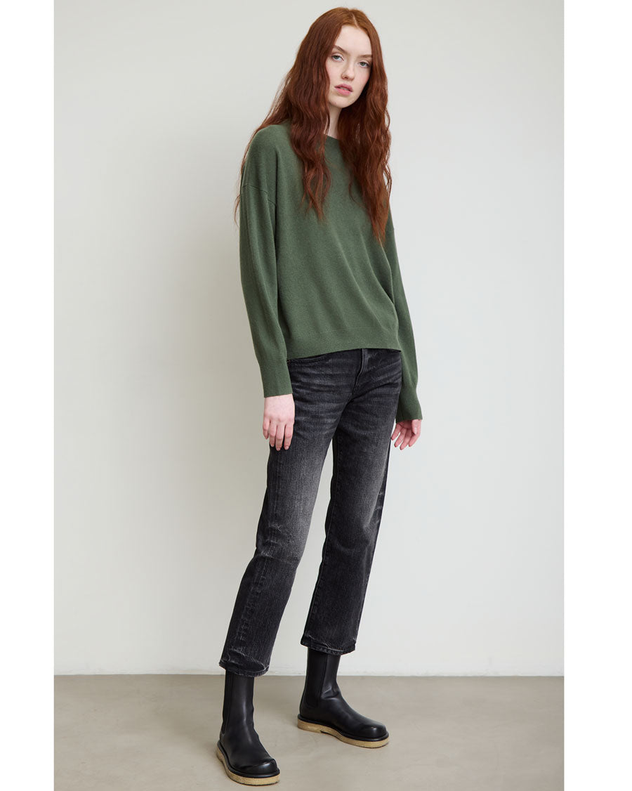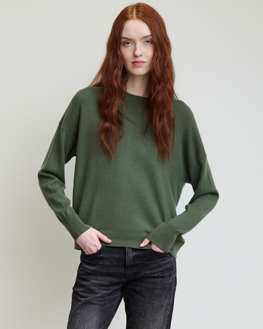 A lightweight everyday crewneck with dropped shoulders, ribbed cuffs and hem, and a relaxed fit.